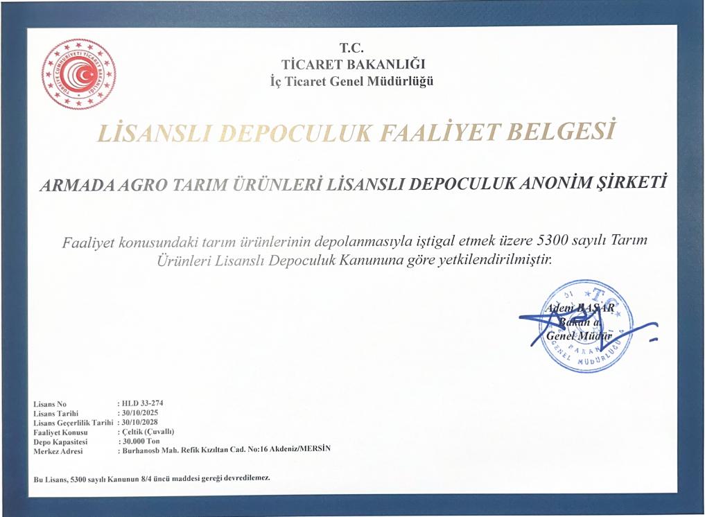 Danışmanlığını Yaptığımız Armada Lidaş Mersin Akdeniz’de Çuvallı Çektik için 30.000 Ton Kapasite ile Lisans Alarak Faaliyete Geçmiştir.